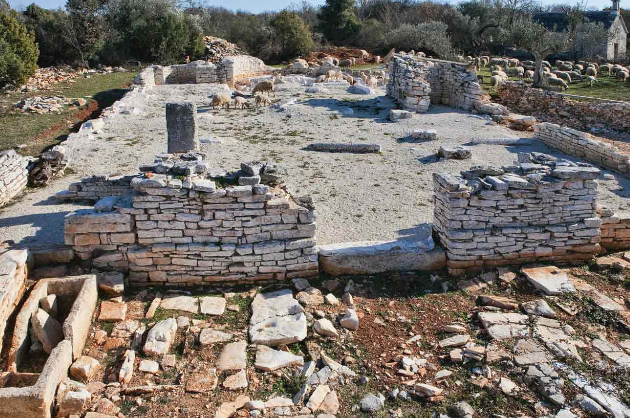South of Marić Cove (Porto Maricchio), stone objects for oil subsidence were found along with evidence of water tanks. Besides the oil production facility, wool production and fabric coloring facilities have also been found. It is assumed that there was a port in Porto Maricchio Cove that was used for the transport of oil. Above Barbariga near to Betiga, there is an ancient villa rustica with a tank.