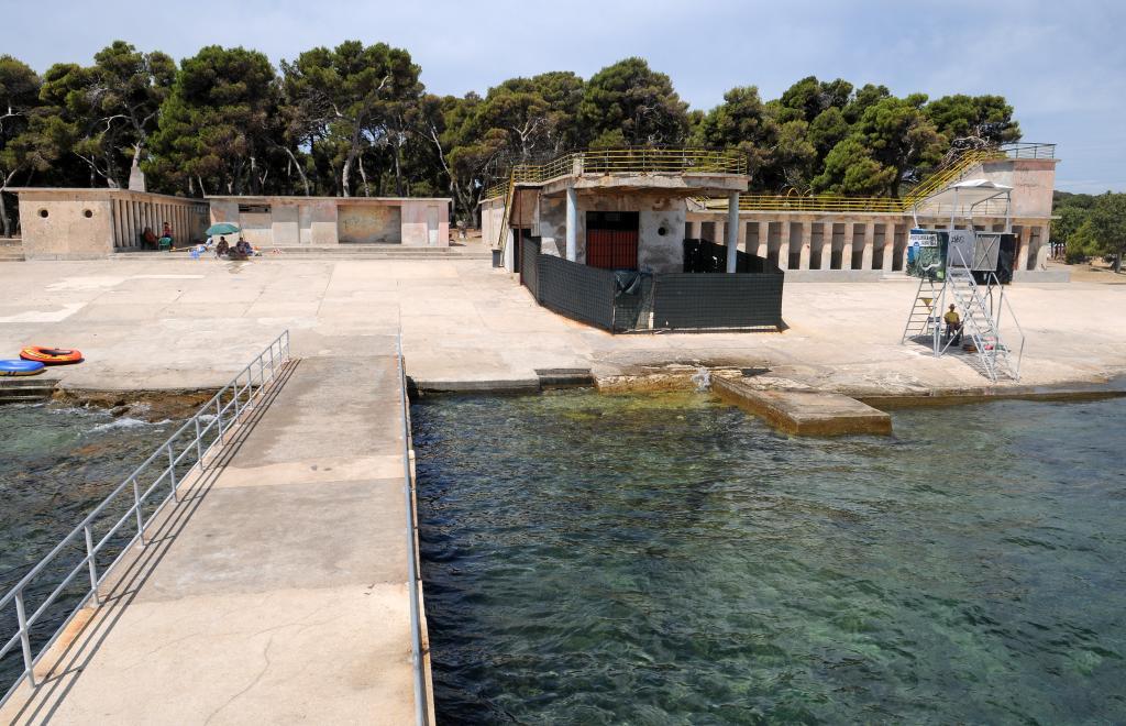 Stoja beach is a city beach which is located on the eastern side of Stoja Peninsula, inside Camp Stoja. It has a toilet, parking and lifeguards which take care of the security. Nearby there is a restaurant. The beach was built on 19th July 1936, and the architect was Enrico Trolis.