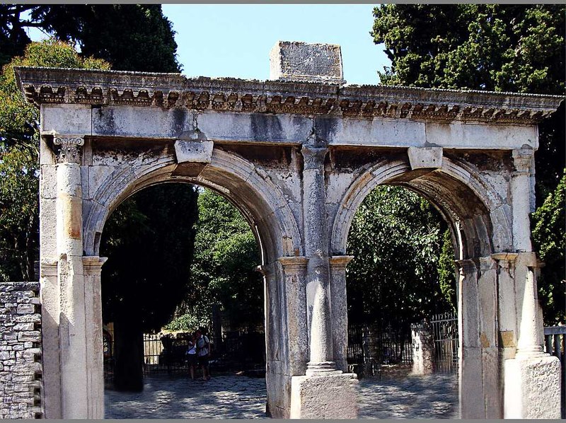 Porta Gemina or Twin gates used to be the part of the path to ancient theater. Today they practically don’t lead anywhere, but belong to the building of Archeological museum and a park with tall cedars. Twin gates were built in the end of the 2nd century on the remains on older Roman gates, and their main role was to serve as an entrance to the ancient theater. The construction is very simple but harmonious, not over-sized, and with two arch passes decorated with three half-pillars, which have composite capitals on top.